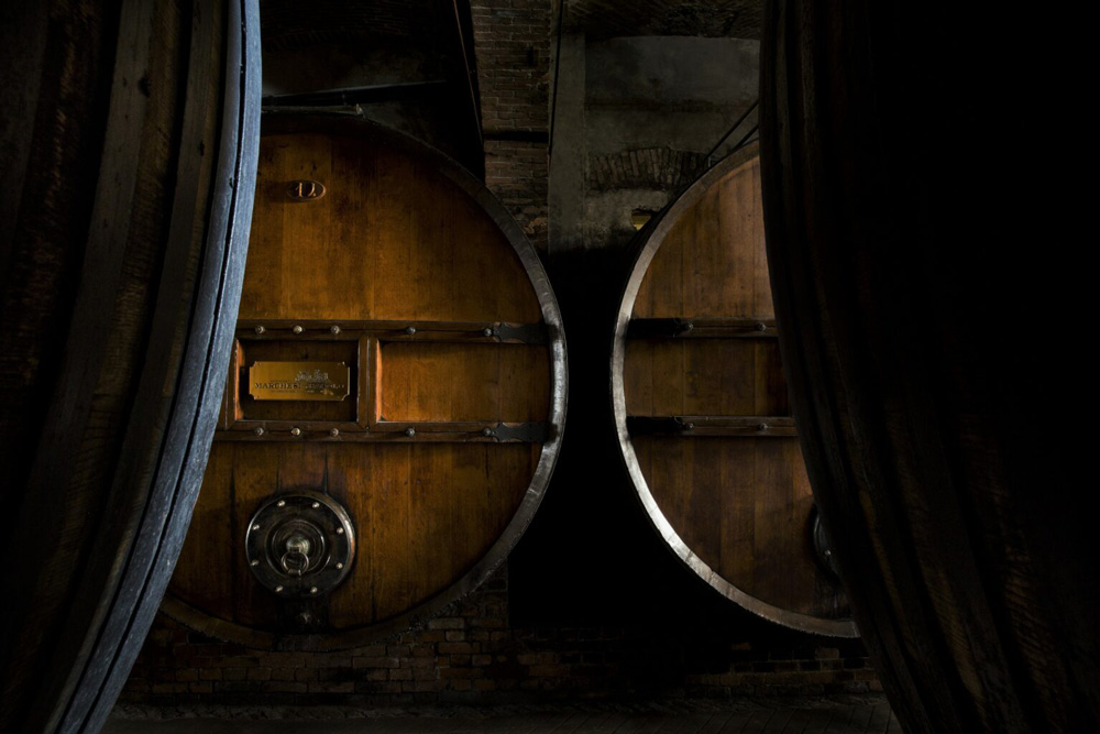 Reposo: El vino envejece durante dos años: una parte en barricas de roble de Eslavonia de 30 o 35 hectolitros (792-924 galones estadounidenses) y la otra parte en barricas pequeñas de roble francés de tostado medio (225 litros / 59 galones estadounidenses). A continuación, las dos partes se mezclan en las tradicionales barricas de roble grandes y el vino completa su clarificación en botella antes de salir al mercado.